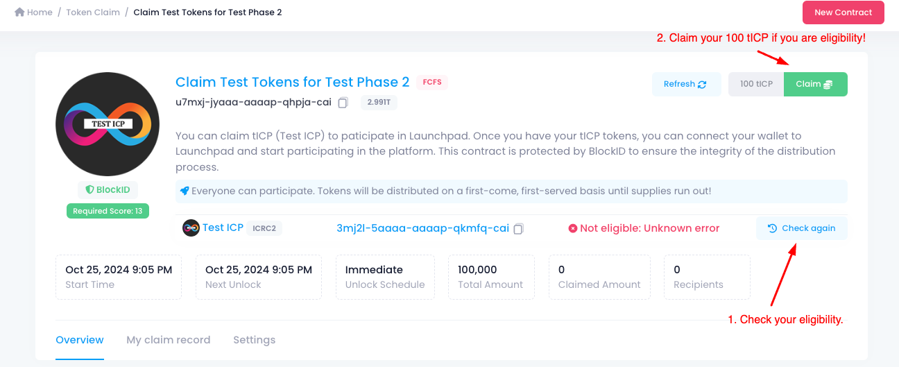 2. **Claim your tICP tokens.** If you haven't already claimed your tICP tokens, you can do so by visiting our token claim portal: <https://icto.app/token-claim/u7mxj-jyaaa-aaaap-qhpja-cai\\> <br>