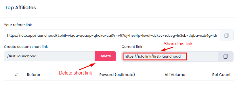 <figure><img src="https://1338744419-files.gitbook.io/~/files/v0/b/gitbook-x-prod.appspot.com/o/spaces%2Fzp6fSpb3vLC0X7L5f45h%2Fuploads%2Fq0OgCpD9qEj5EcNqIN4l%2FScreenshot%20(33).png?alt=media&#x26;token=11ce7a81-dc1e-4217-876e-3e98e901c143" alt=""><figcaption><p>Manage short link</p></figcaption></figure>